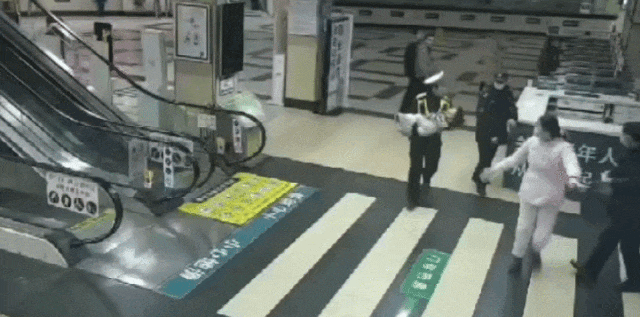 抱着小孩奔跑的辅警韩靖