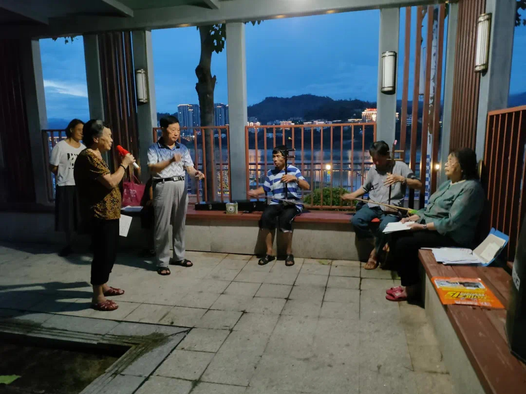 “渡口党群倡文明,移风易俗民欢迎,尊老爱幼传美德,精神文明树新风……”在江滨生态公园广场,时常能听到移风易俗小乐队的悠扬歌声,他们以歌曲的形式倡导文明新风,深受村民喜爱。八旬老夫妻张德美与郑林春是乐队的主要成员,张德美是乐队主唱,郑林春则发挥自己的特长,创作了十余首移风易俗歌曲。