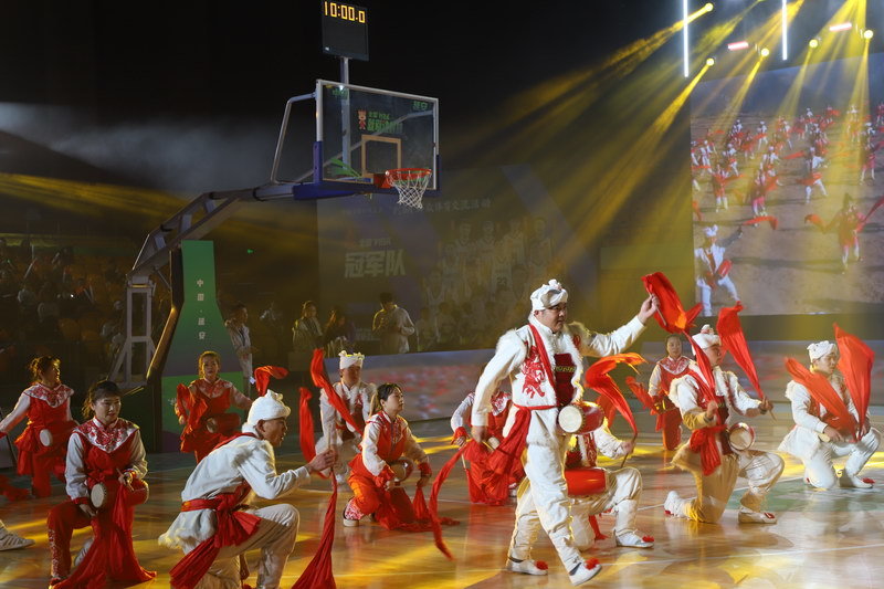 10月28日,“村BA”群众体育交流活动现场表演《安塞腰鼓》。王露 摄