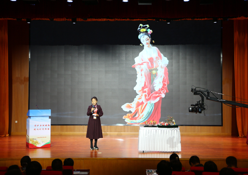 重庆市北碚区静观镇腊梅插花传承人邓纪会讲述非遗故事。姜丽 摄
