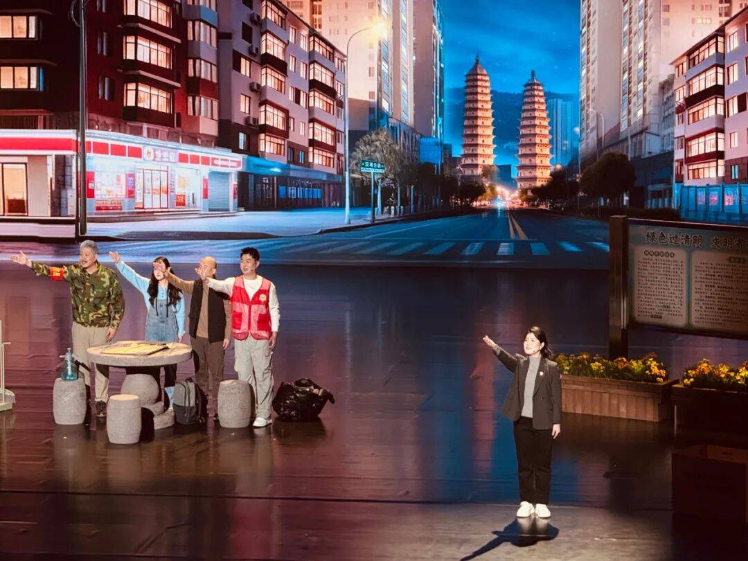 山西选送小品《清明新风》。清明节前夜,李建军在路口给去世的父亲焚烧纸钱,社区书记和志愿者以真情和善意及时劝阻,最终他选择了文明祭扫。王晓宁 摄