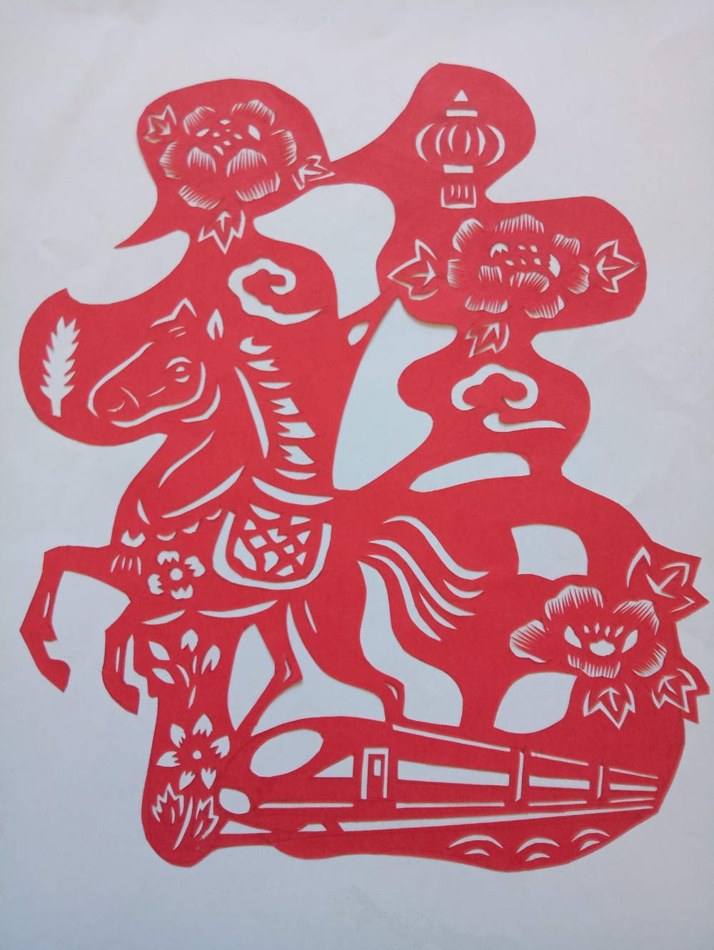 剪纸《马踏春归,铁运呈祥》。中国文明网网友@金亮 摄